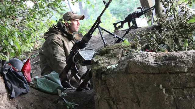 Боец полка полиции специального назначения имени Ахмата Кадырова в населенном пункте Попасная в ЛНР